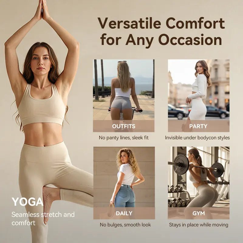 Feel confident in any outfit. CamelNo™ hides lines under leggings, dresses, and shorts.